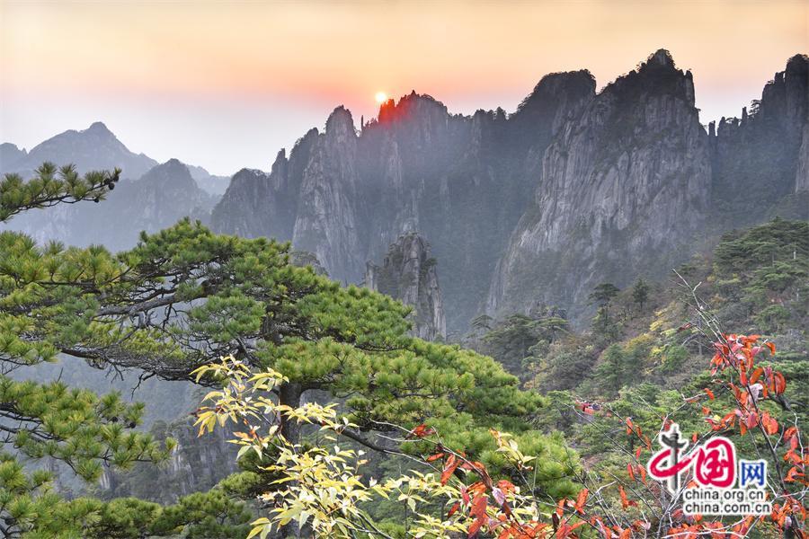 10月以來黃山風景區(qū)已進入秋色斑斕季節(jié),是一年中色彩最豐富的季節(jié),晨曦暮落,處處如畫,古松與秋果相隨,青紅交織,金黃色的樹葉隨秋風在空中飛舞,或飄落在游步道上、或散落在峽谷中,處處生機盎然,令人流連忘返,明代旅行家徐霞客是這樣贊美黃山的“楓林相間,五色紛披,燦若圖繡”。