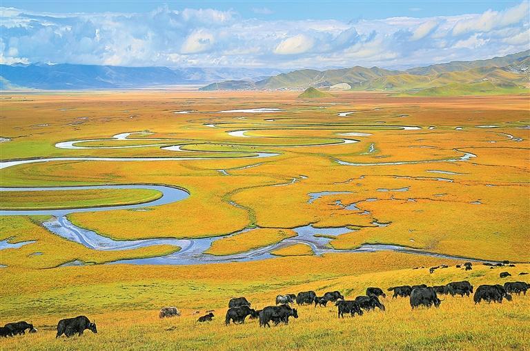 “天下黃河第一彎”“格薩爾發(fā)祥地”“中國賽馬之鄉(xiāng)”“世界最大最美的濕地草原”“藏族民歌彈唱故里”……這就是瑪曲,被譽(yù)為“中華水塔”和黃河的“蓄水池”?,斍卣Z譯為“黃河”,這里歷史文化悠久,旅游資源富集,擁有廣袤的草原、俊秀的濕地。近年來,呈現(xiàn)蓬勃發(fā)展之勢的文旅產(chǎn)業(yè),成為瑪曲縣深挖獨(dú)特資源稟賦、激活區(qū)域經(jīng)濟(jì)發(fā)展的一個縮影。