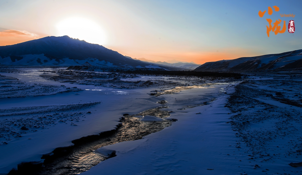 清晨時(shí)分,安靜的村落里升起裊裊炊煙,朝霞、山巒、冰河融為一體,詩(shī)意盎然,剔透著一派水墨丹青的韻味。