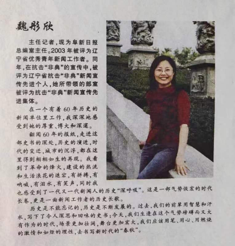 魏彤欣在阜新日?qǐng)?bào)創(chuàng)刊60周年發(fā)表的感言。