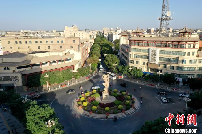 圖為敦煌城市內(nèi)一景,敦煌城標——反彈琵琶。(資料圖)張曉亮 攝