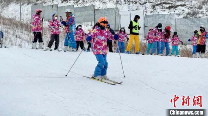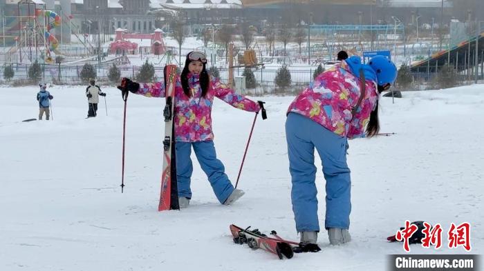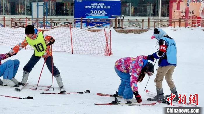 圖為滑雪教練對(duì)臺(tái)胞青年進(jìn)行首次滑雪前的培訓(xùn)。王牧雨 攝