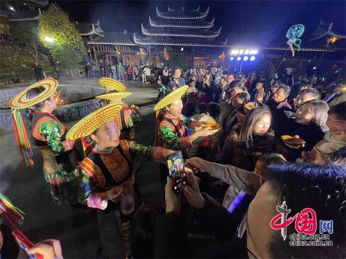 好在天氣給臉,年三十到正月初五,天天陽光明媚,溫暖熙熙,給演唱會(huì)的人氣奠定了很好的基礎(chǔ)。你瞧,穿巖山景區(qū)楓香瑤寨、千里古寨、雁棲山莊、蒲安沖民宿、時(shí)珍園康養(yǎng)上千個(gè)房間都住滿了游客,都連統(tǒng)溪河鎮(zhèn)上的酒店、客棧都是爆棚。從婁底趕來李小苑一家五口和唐詩(shī)一家三口,結(jié)伴而來,沒有住處,只好到遠(yuǎn)離景區(qū)15公里的縣城住下,然后去景區(qū)吃晚飯,晚上觀看演出。唐詩(shī)對(duì)筆者說,我來過穿巖山,感覺這里的風(fēng)景好看,工作人員也很客氣,有那么多的住宿點(diǎn),我就沒有預(yù)訂。想不到來了之后,全訂完了。