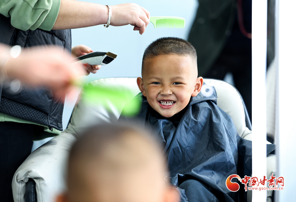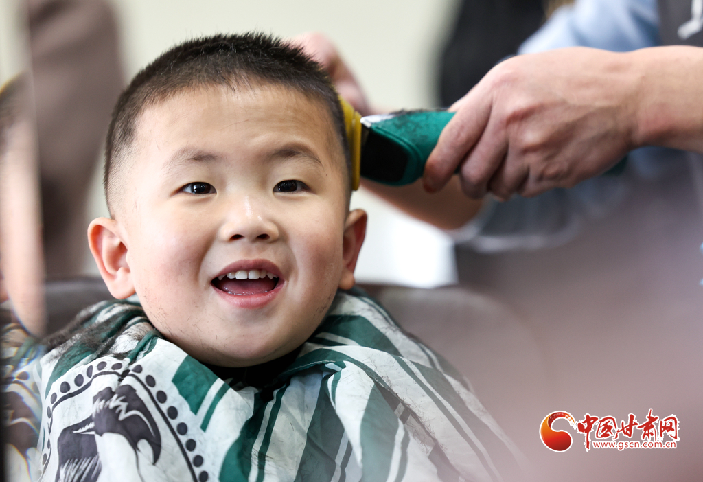 3月11日,在臨夏市一理發(fā)店內(nèi),理發(fā)師正在為一名小朋友“剃龍頭”。當(dāng)日,是農(nóng)歷二月初二,許多家長帶著孩子到理發(fā)店理發(fā),希望孩子能健康成長,日后出人頭地,為新的一年討個(gè)好彩頭。