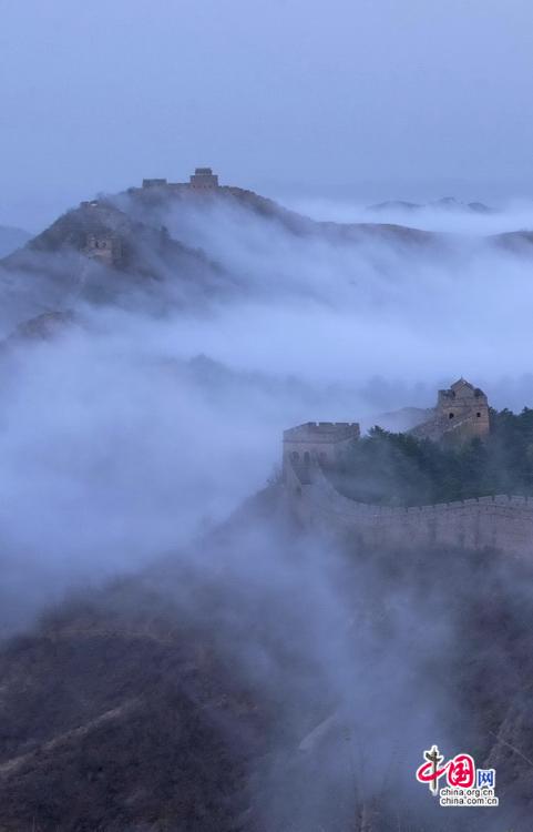 春風(fēng)輕撫金山嶺, 茫茫云海與蜿蜒長城相互映襯,構(gòu)成了一幅幅壯美畫卷。