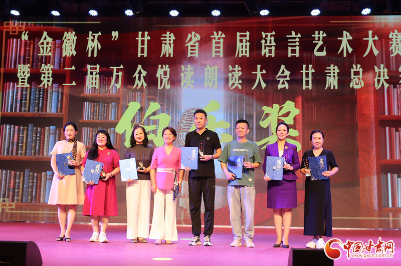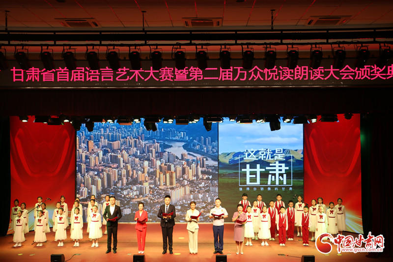 在展演環(huán)節(jié),參賽選手們用豐富多彩的語言表演形式,聲情并茂的舞臺演繹,為觀眾呈現(xiàn)了一場精彩絕倫的視聽盛宴,贏得了現(xiàn)場觀眾經(jīng)久不息的掌聲,頒獎(jiǎng)儀式在合誦《這就是甘肅》中落下帷幕。