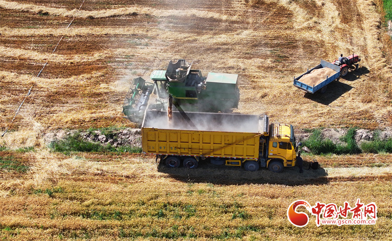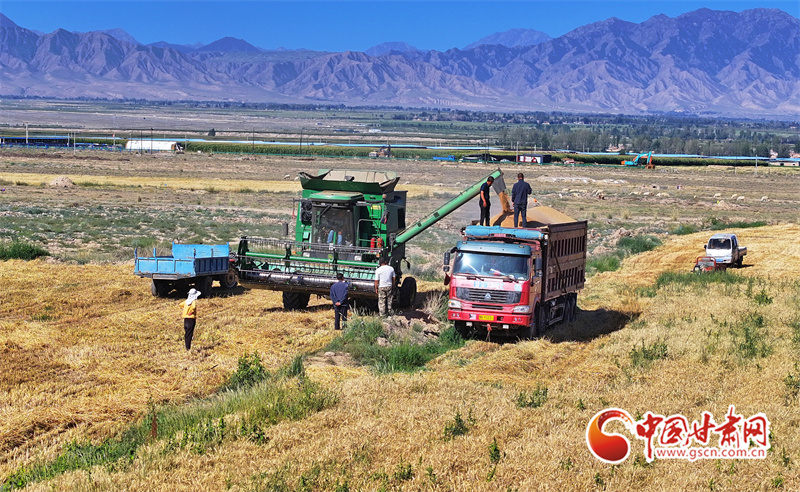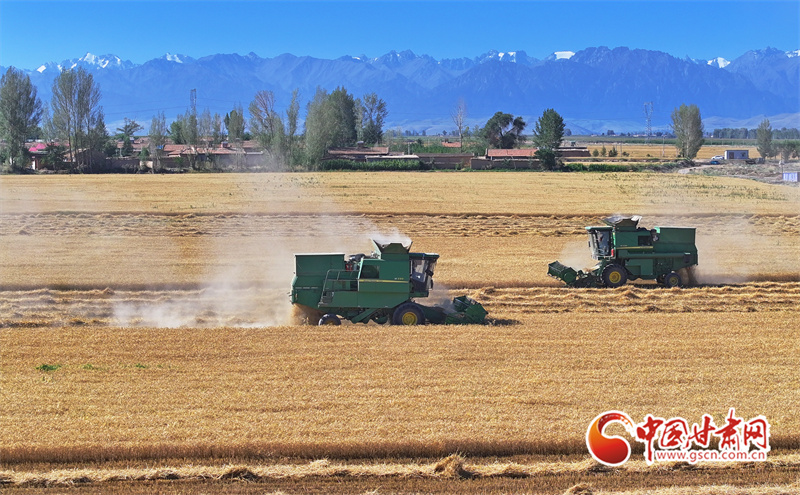 眼下,位于祁連山下的民樂縣南古鎮(zhèn)毛城村800畝連片小麥種植基地上,機(jī)聲隆隆,農(nóng)機(jī)手們駕駛收割機(jī)穿梭往返麥田之中搶收小麥,一派忙碌的豐收景象。近期,隨著民樂縣沿祁連山冷涼山區(qū)小麥迎來(lái)成熟季,民樂縣種植的26萬(wàn)畝小麥進(jìn)入了繁忙的收割期。