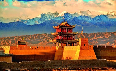 雄關六百載,長城越千年。看今朝,戈壁之上,嘉峪關關城的朱色城樓與終年皚皚的祁連雪峰交相輝映,歷經(jīng)風霜久而彌堅;峭壁之巔,長城第一墩矗立于此,腳下流淌的討賴河水澎湃不息;山脊之上,懸壁長城形似凌空倒掛,氣勢雄偉。