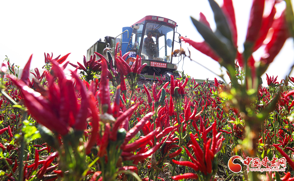 近日,臨澤縣平川鎮(zhèn)種植的3900多畝朝天椒進(jìn)入采收期,朝天椒采收機(jī)馬達(dá)轟鳴,在田地里來回穿梭,快速采收。種植農(nóng)戶們把采收的朝天椒運(yùn)往晾曬場,經(jīng)過分揀、晾曬、包裝后發(fā)往山東、河南、安徽、重慶、貴州等地訂單客戶手中。