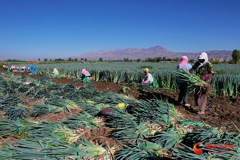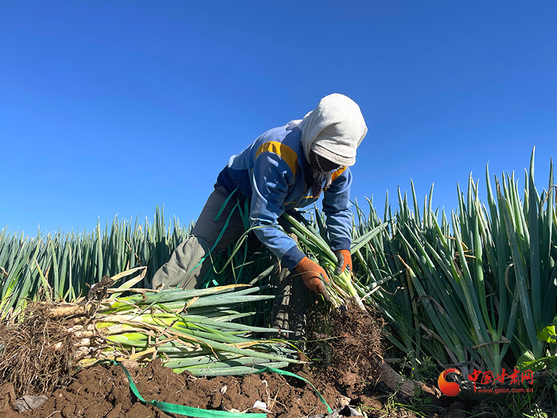 金秋時(shí)節(jié),山丹縣清泉鎮(zhèn)南關(guān)村的260畝大蔥迎來(lái)了豐收。