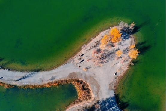 金波湖是金塔胡楊林的心臟,是臨水胡楊的最佳拍攝地之一。湖面倒映著胡楊高大的身影,多姿的樹(shù)干,黃色的樹(shù)葉,都毫不保留地在水中展示出來(lái)。小橋流水、碧波蕩漾、白鵝嬉戲,若不是周邊金黃色的胡楊提醒,會(huì)讓人誤以為來(lái)到了江南水鄉(xiāng)。