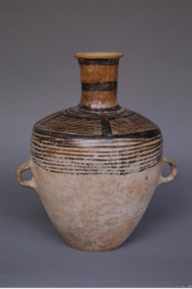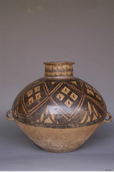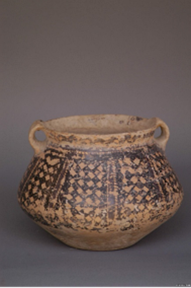 (菱格紋彩陶雙耳罐)