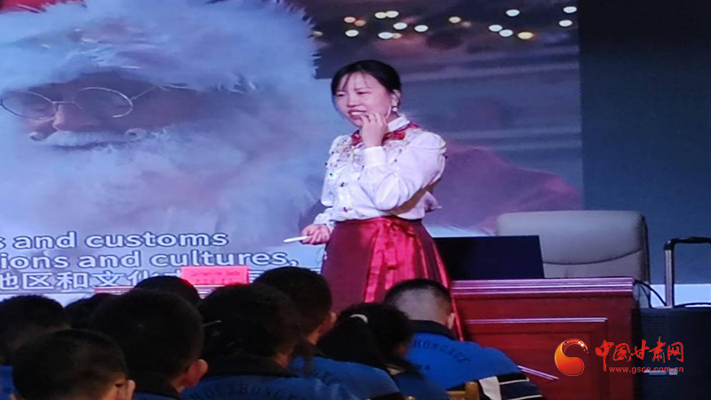 慶祝民族節(jié)日是民族文化的集中展示,也是民族情感的集中表達(dá)。肅州中學(xué)英語組的向昱老師以“地球村”引入主題,鼓勵同學(xué)們用英語講述關(guān)于中國春節(jié)的民間故事,了解世界各國不同文化背景下對節(jié)日的慶祝方式,引導(dǎo)大家在文化交流中尊重差異、理解個性,共同促進文化的多樣性。