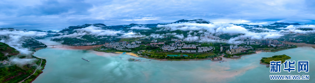 雨后云霧繚繞的江畔小城(10月6日攝)。新華網發(fā)(曾三東 攝)
