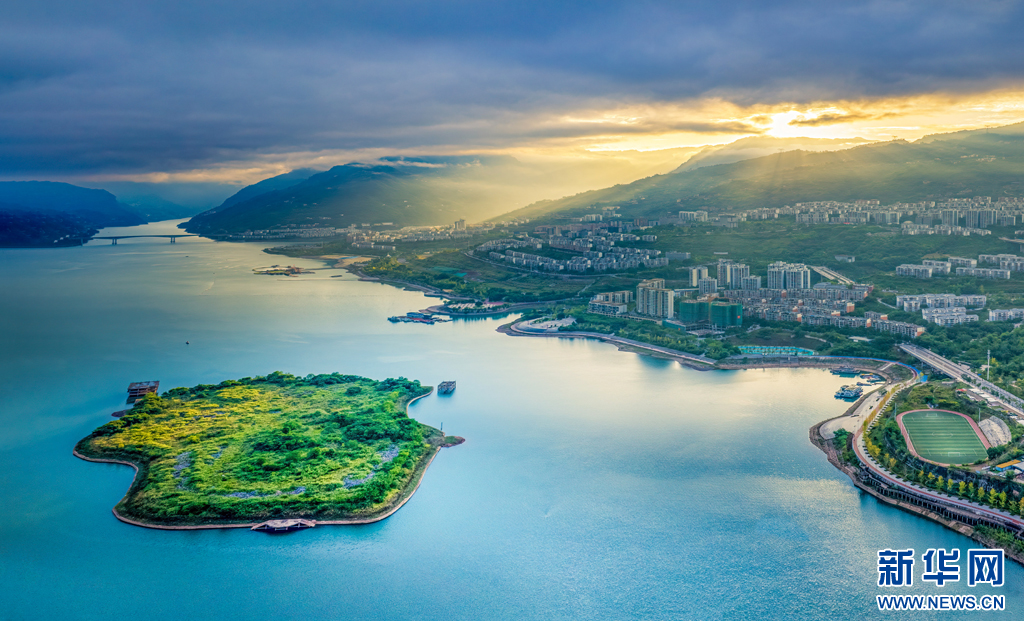 朝陽映襯下的江畔小城綏江,水清岸綠景美(10月23日攝)。新華網發(fā)(曾三東 攝)
