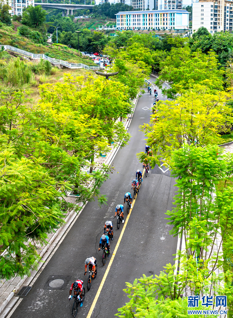 2024環(huán)昭通國際公路自行車賽(綏江—水富賽段)比賽現(xiàn)場(11月8日攝)。新華網發(fā)(曾三東 攝)