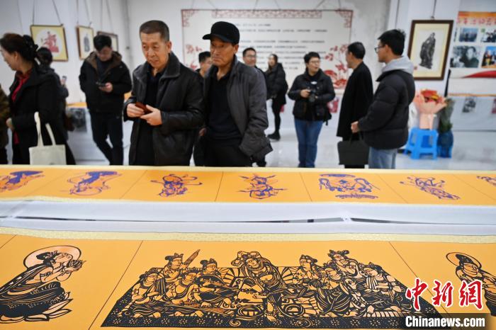 11月19日,“蘭州剪紙”非遺傳承人李自新、李麟桐剪紙藝術(shù)展在甘肅省蘭州市開幕,展出以敦煌壁畫、隴上風(fēng)物等為題材,精心創(chuàng)作的剪紙作品。圖為展出的剪紙作品。中新社記者 九美旦增 攝