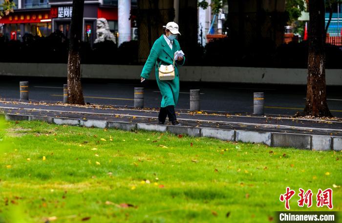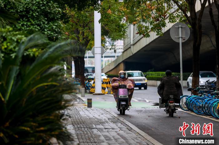 11月25日,市民在街頭出行。當(dāng)日,武漢受寒潮天氣影響,氣溫下降明顯。武漢市氣象臺(tái)24日18時(shí)27分發(fā)布寒潮藍(lán)色預(yù)警信號(hào),受較強(qiáng)冷空氣影響,預(yù)計(jì)24日至26日,武漢最低氣溫降幅達(dá)7℃~9℃。中新社記者 張暢 攝