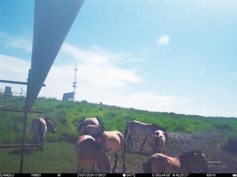近日,甘肅敦煌西湖國家級(jí)自然保護(hù)區(qū)管護(hù)中心工作人員整理紅外相機(jī)拍攝畫面時(shí),發(fā)現(xiàn)拍攝到普氏野馬“哺乳”的清晰影像。畫面拍攝于今年7月下旬,有8匹普氏野馬繁殖群正在馬圈灣濕地的飲水泉附近活動(dòng),其中有一匹小馬駒滿足地吸吮著母馬的乳汁。據(jù)監(jiān)測(cè),該小馬駒出生于6月上旬,畫面中約已有一個(gè)半月大小,身體健康,毛色光亮。這個(gè)繁殖群領(lǐng)地范圍主要從馬圈灣西觀景臺(tái)至馬圈灣東高地,該區(qū)域可采食物種類豐富、水源充沛,是適合普氏野馬生活的美麗家園。普氏野馬是國家一級(jí)重點(diǎn)保護(hù)動(dòng)物,常棲息于山地、草原和荒漠,性機(jī)警、善奔跑。近年來,隨著敦煌西湖保護(hù)區(qū)生態(tài)環(huán)境保護(hù)力度加大,生態(tài)環(huán)境質(zhì)量持續(xù)改善,群眾保護(hù)野生動(dòng)植物的意識(shí)不斷增強(qiáng),使野生動(dòng)物活動(dòng)范圍不斷擴(kuò)大,種群數(shù)量不斷增加。截至目前,敦煌西湖保護(hù)區(qū)內(nèi)普氏野馬種群數(shù)量已達(dá)166匹。
