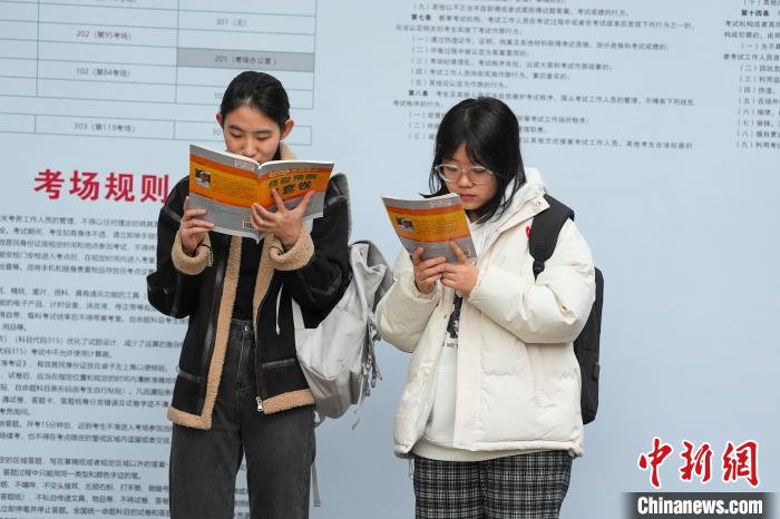 圖為考生在考場(chǎng)外復(fù)習(xí)。中新社記者 楊華峰 攝