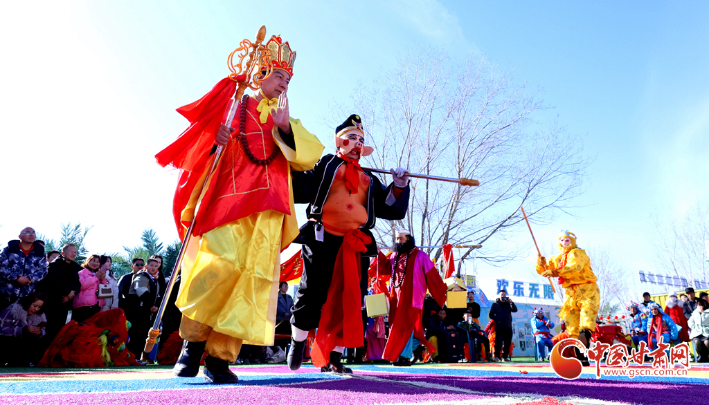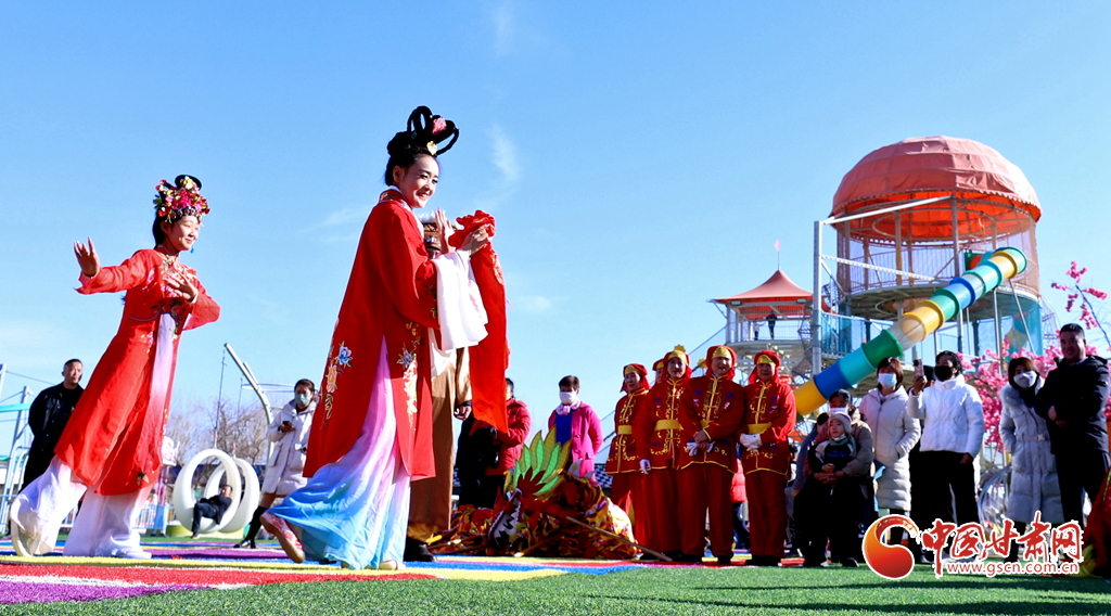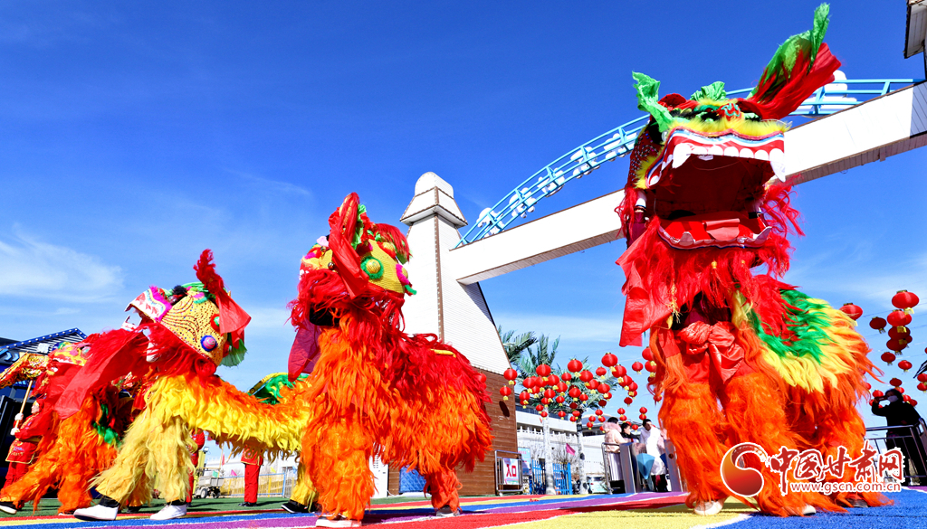 春節(jié)期間,甘肅省張掖市甘州區(qū)一游樂園內(nèi)熱鬧非凡,張掖云海民俗文化藝術(shù)團(tuán)的演員們舞起祥龍雄獅、敲起威風(fēng)鑼鼓,讓市民和游客在傳統(tǒng)民俗文化的氛圍中歡度春節(jié)假期。