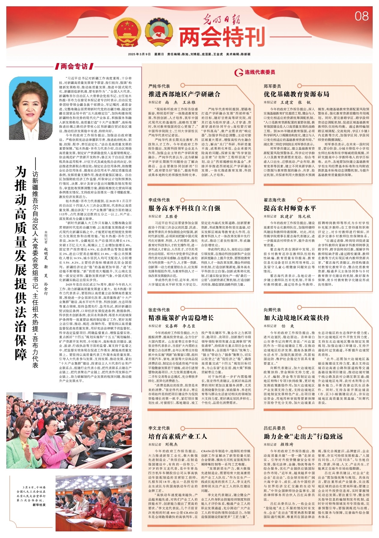 嚴(yán)純?nèi)A代表長期關(guān)注教育、科技和人才工作。今年的政府工作報告提出,發(fā)揮科技領(lǐng)軍企業(yè)龍頭作用,加強企業(yè)主導(dǎo)的產(chǎn)學(xué)研深度融合。嚴(yán)純?nèi)A代表認(rèn)為,這為破解產(chǎn)學(xué)研長期脫節(jié)問題給出了解決路徑。企業(yè)要做協(xié)同創(chuàng)新的“引擎”,政府要當(dāng)好“鏈長”,提高科技成果本地轉(zhuǎn)化的積極性和轉(zhuǎn)化率。