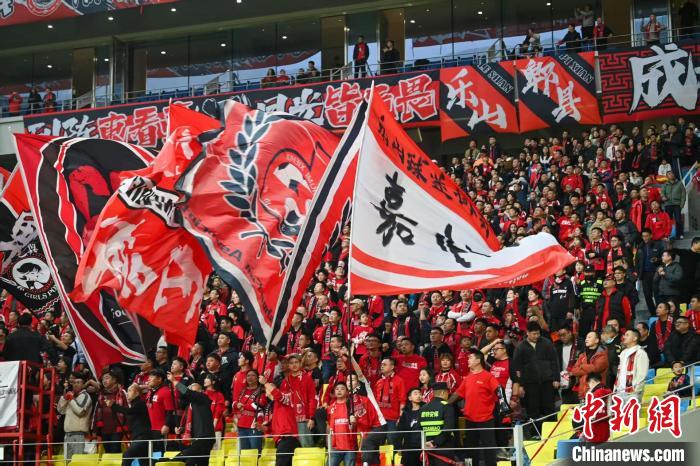 2025年3月2日,在四川成都舉行的2025賽季中超聯(lián)賽比賽中,成都蓉城隊(紅衣)主場迎戰(zhàn)天津津門虎隊?;鸨?ldquo;金牌球市”折射出成都賽事經(jīng)濟的日益崛起?!⒅铱?nbsp;攝