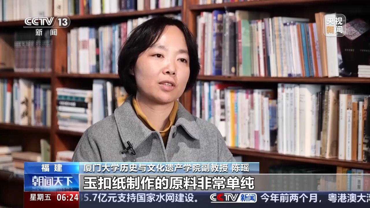 廈門大學歷史與文化遺產(chǎn)學院副教授 陳瑤:玉扣紙制作的原料非常單純。就是三種,一個是竹子嫩竹,第二個是石灰,第三個就是清潔的山泉水?;旧鲜羌兛咳斯磉M行品質的管控。