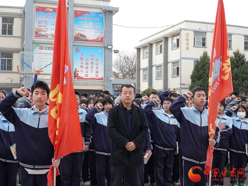 上午8時(shí)30分,華池縣列寧學(xué)校內(nèi)莊嚴(yán)肅穆,華池縣柔遠(yuǎn)初中、華池二中、城壕初中、山莊初中、列寧學(xué)校師生及各界代表懷著崇敬的心情列隊(duì)集合,舉行出征儀式。5所學(xué)校16支先鋒隊(duì)被授予“紅色傳承先鋒隊(duì)”旗幟,隨后師生代表吹響沖鋒號揮旗出發(fā),開啟這場特別的旅程。