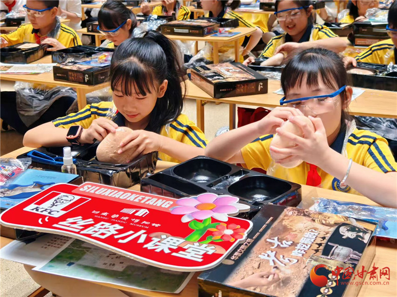 中國(guó)甘肅網(wǎng)5月18日訊(西北角·中國(guó)甘肅網(wǎng)記者 宋芳科)“考古盲盒 再探秦文化。”5月18日,由甘肅簡(jiǎn)牘博物館、甘肅省文物考古研究所、肯德基聯(lián)合舉辦的絲路小課本開(kāi)課。作為2025年國(guó)際博物館日甘肅省主會(huì)場(chǎng)活動(dòng)之一,來(lái)自蘭州市多所小學(xué)的學(xué)生們?cè)诳系禄嫫娴呐惆橄?,感受了一?chǎng)跨越千年的文化盛宴。