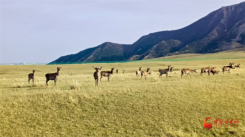 初夏的肅南大河草原牧草逐漸返青,一群群馬鹿在草原上悠閑覓食,游客到來并沒有打擾它們的正常活動(dòng)。