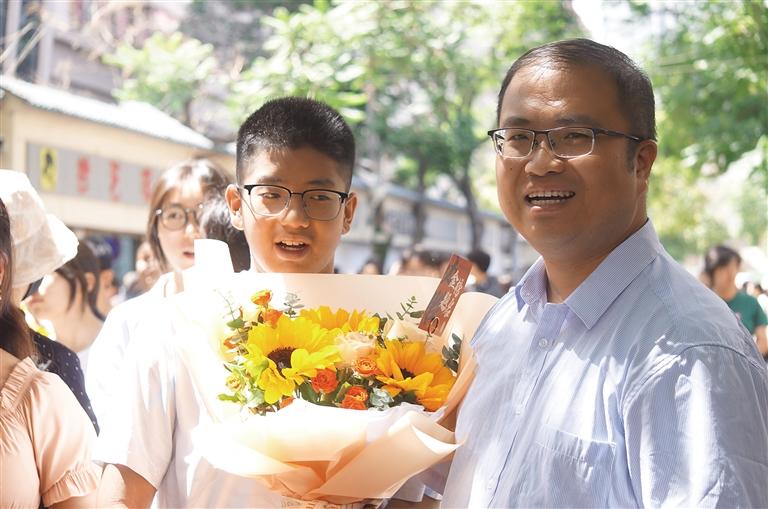 花束也是祝福的首選,“一舉奪魁”的向日葵更是家長們的最愛。在各考點附近的鮮花店里,以向日葵為核心的花束賣得格外好。首科的語文考試結束后,考生們最先收到的就是鮮花,還有媽媽的擁抱。