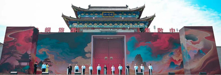 最受矚目的啟動儀式上,與會領(lǐng)導(dǎo)嘉賓共同觸發(fā)啟動裝置,現(xiàn)場大屏如“城門”般緩緩開啟,崆峒古鎮(zhèn)城門同步打開,各門派旗幟于城門之上迎風(fēng)飄揚(yáng)。啟動嘉賓與各門派代表共同步入城門,象征著崆峒武術(shù)打破邊界、融會貫通的武學(xué)精神,更開啟了各方交流共進(jìn)的新篇章。