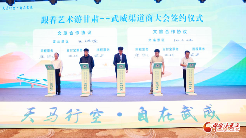 蘭鐵國旅與冰溝河景區(qū)、河西都會達(dá)成合作協(xié)議;市屬重點(diǎn)景區(qū)雷臺、文廟、天梯山石窟、涼州會盟紀(jì)念館與攜程、同程、支付寶三大平臺達(dá)成線上合作簽約,四方將圍繞客源組織、門票直連、聯(lián)合推廣展開立體合作。