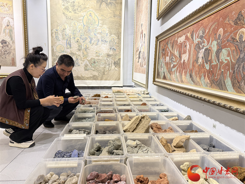 “莫高窟壁畫是文化交融的藝術結晶,畫師的顏料有的來自敦煌本土采集,也有從中原和西域帶來的,這些礦物質顏料以頑強的生命力為今人保存了堪稱瑰寶的技術殿堂。”王亞林介紹莫高窟壁畫的長青密碼,作為敦煌人,她要沿著前人的足跡尋找敦煌的色彩。三危山上有10多種制作顏料的礦物質,大泉河畔有澄板土,這些都是王亞林收集的敦煌色彩。