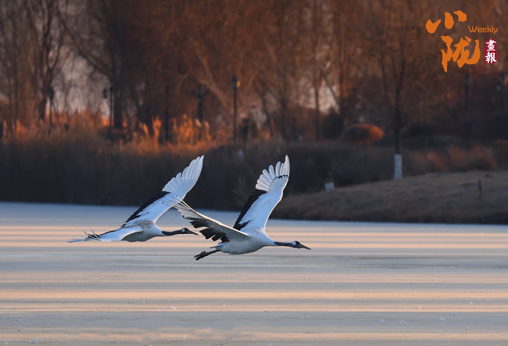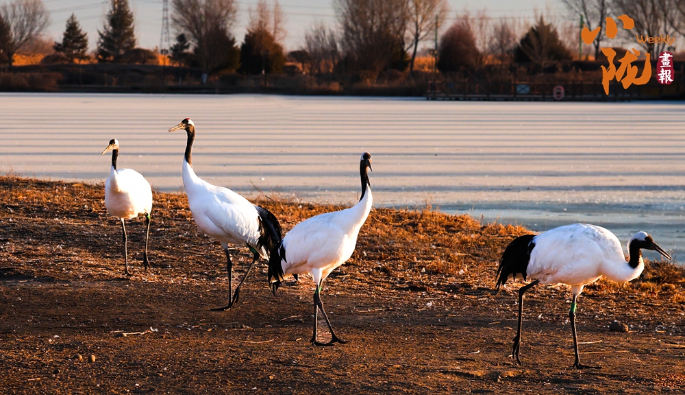冰面映照著澄澈藍(lán)天,丹頂鶴展翅掠水,引頸高歌,清脆的鳴叫聲仿佛是大自然奏響的美妙樂(lè)章。