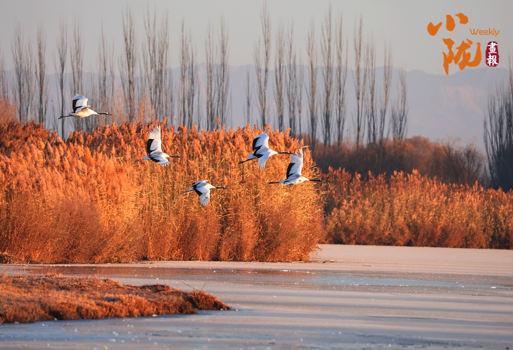 金色的蘆葦坡上均能看到它們優(yōu)雅的身影。這里,除了丹頂鶴,還有天鵝、綠頭鴨、斑頭雁等很多水鳥(niǎo),它們的倩影成為濕地冬日里最動(dòng)人的靈動(dòng)色彩。