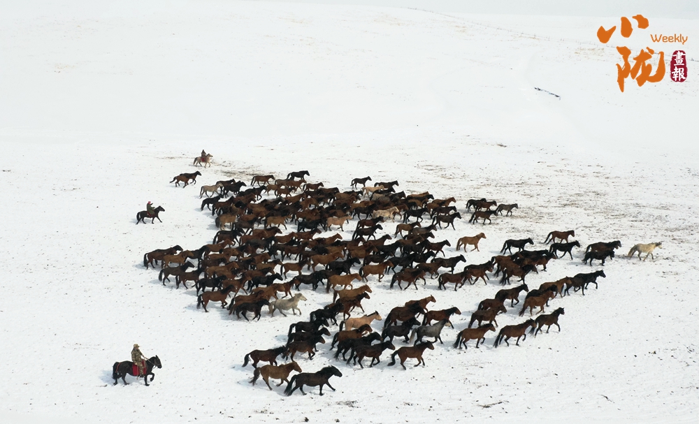 馬蹄踏雪,奔馳如風(fēng),揚起的鬃毛在空中甩出燦金軌跡。每一起落,皆是對古老牧歌的深情復(fù)刻,祁連的巍峨、絲路的遼遠(yuǎn),都被寫入這磅礴起伏的呼吸之間。